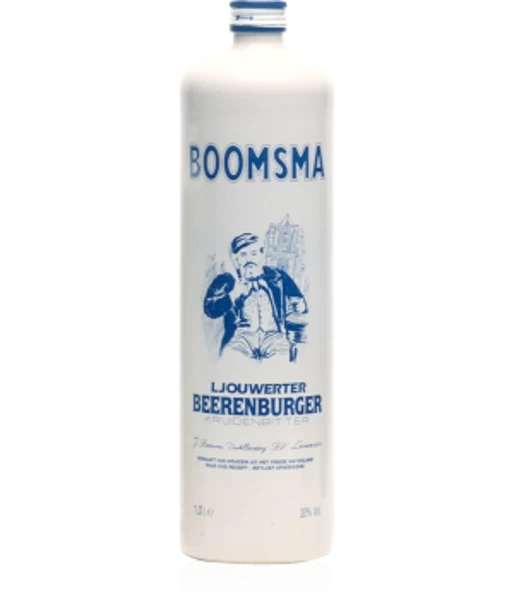 De enige echte Boomsma Beerenburger in een oud Hollandsche kruik van 50 cl. ZICHT/KLEUR Bruin. GEUR Heerlijk kruidig, zoethout en kalmoes. SMAAK Vol, maar zacht. AFDRONK Milde afdronk. COCKTAIL Als aperitief of als basis voor een longdrink. Een Beerenburg cola bijvoorbeeld, of probeer eens ‘De Beer is los!’: · 5 cl Boomsma Beerenburger · 1 cl appellikeur · 1 ml honing · 5 ml appelsap · ijs, kapot · 4 ijsklontjes Schud alle ingrediënten, behalve de 4 ijsklontjes, in een cocktailshaker. Schenk de cocktail uit over de ijsklontjes in een whiskyglas en garneer met een schijfje appel. BIJZONDERHEDEN Boomsma Beerenburger wordt nog altijd gemaakt volgens dezelfde ambachtelijke traditie als 125 jaar geleden. Dat begint met een zorgvuldige selectie van de allerbeste kruiden waaronder gentiaan, jeneverbes, zoethout en laurierbes. Deze worden in de juiste verhouding met elkaar vermengd en onder streng toezicht van de distillateur tenminste twee maanden lang op alcohol getrokken. Het resultaat is een karakteristieke beerenburger met een volle smaak en een krachtig aroma. Een zuiver natuurproduct, dus zónder kunstmatige kleur-, geur- of smaakstoffen.
