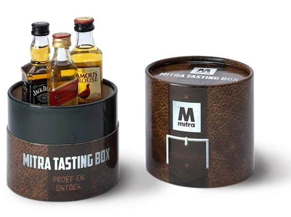 In deze Mitra Tasting Box zitten 3 flesjes met Blended Whisky uit Schotland (5cl). Ontdek je favoriet! Een leuk cadeau om te geven of om te krijgen! Inhoud: Jack Daniels – Black Label Old No7 Johnnie Walker – Red Label The Famous Grouse – Scotch Blended